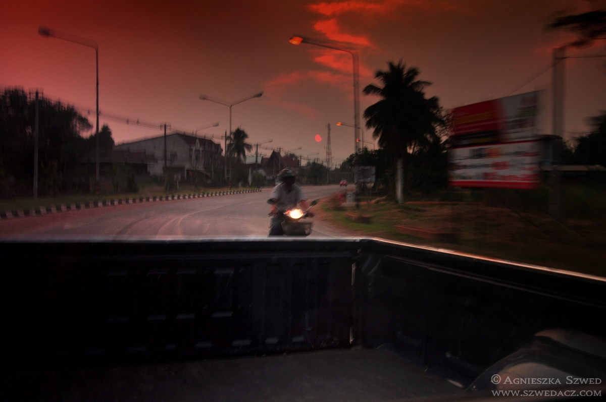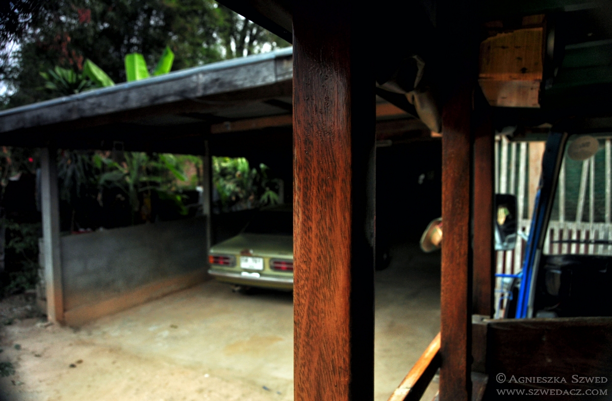 Nasze zdziwienie sięgnęło zenitu, gdy kierowca wjechał na czyjąś posesję, zaparkował w garażu i poprosił o opuszczenie pojazdu. WTF? Staliśmy chwilę skołowani, czekając na rozwój wypadków. Nasz kierowca wyjechał z drugiego garażu zwykłą osobówką i gestem dłoni zaprosił nas do środka. W końcu wszystko stało się jasne. Po co z trzema osobami na pokładzie pokonywać trasę pojazdem spalającym hektolitry, gdy można podróżnych podwieźć ekonomicznym autem. Nie pytajcie tylko co z podróżnymi czekającymi na kolejnych przystankach. Musieli się najwyraźniej zadowolić kolejnym transportem (choć z drugiej strony, po drodze żadnego przystanku już nie widziałam). Trzymanie autobusu we własnym garażu również nie jest w Tajlandii powszechną praktyką. To chyba taka fantazja naszego kierowcy. Na dworzec dotarliśmy na czas.