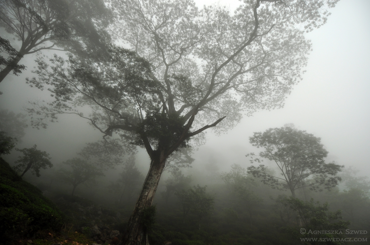 Co prawda nie dotarliśmy do samego mglistego lasu, mimo to gwałtowna zmiana pogody zagwarantowała nam poznanie panujących w nim warunków. Zanim jednak aura uległa zmianie, mieliśmy okazję podziwiać piękno zielonych grzbietów skąpanych w południowym słońcu. Natknęliśmy się także na kilka odosobnionych domostw i ich mieszkańców. Tubylcy, żyjący z dala od cywilizacji, zajmują się głównie uprawą ryżu i kardamonu (jednej z najdroższych przypraw na świecie). Najmłodsi mieszkańcy niższych partii gór nie są jednak odseparowani od świata i pobierają naukę w publicznych szkołach, oddalonych jednak od domu. Podczas wędrówki zdarzyło nam się natknąć na grupkę dziewczynek, w charakterystycznych mundurkach, wracających w góry po skończonych zajęciach.