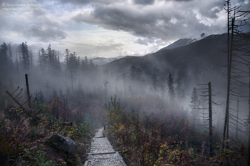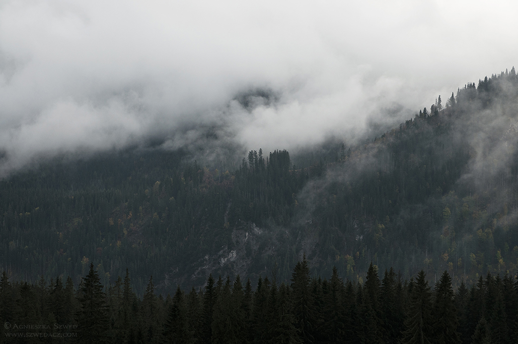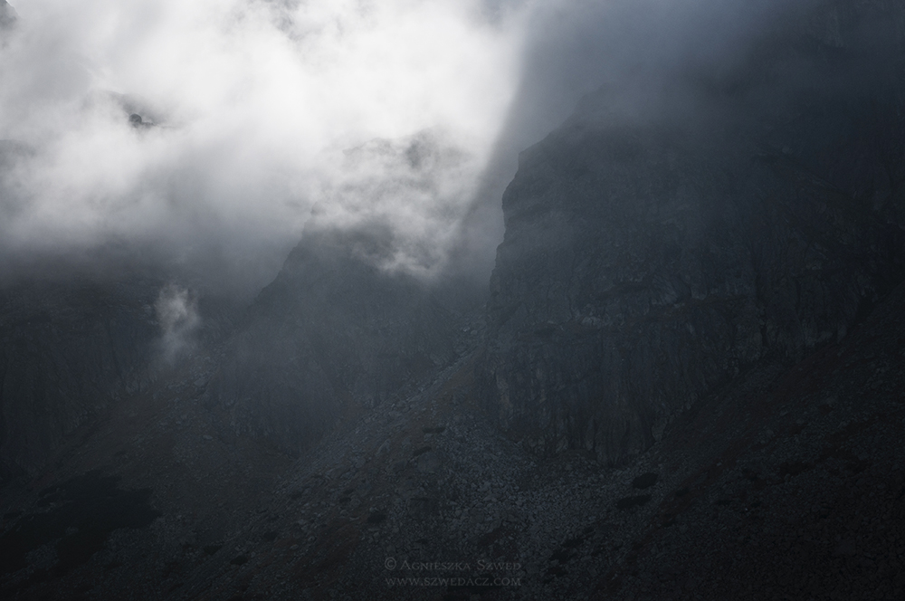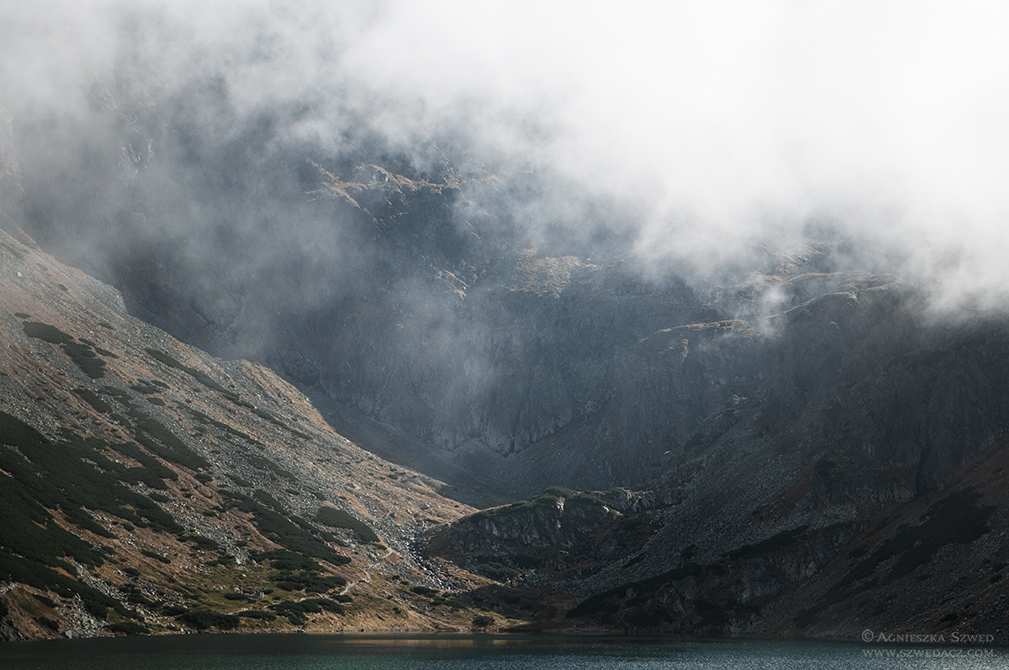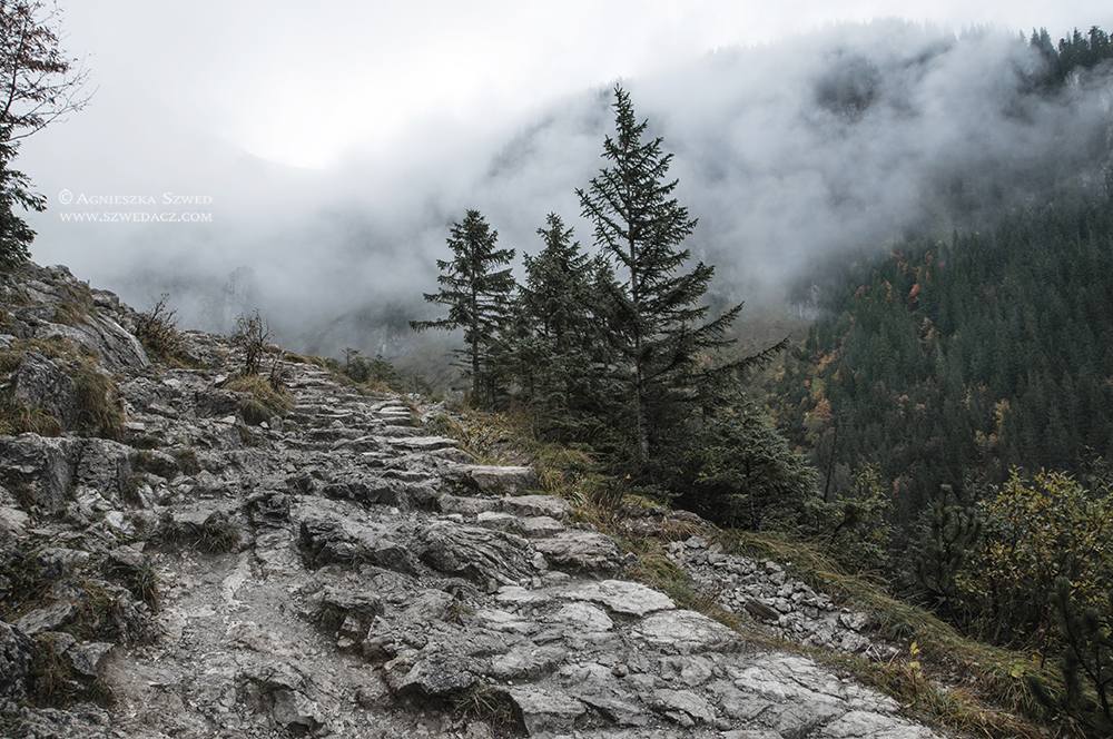 Każda pora roku ma swój urok, zwłaszcza w górach. Ten wyjazd, mimo niepewnych początków, utwierdził mnie w przekonaniu, że jesienią jest tu szczególnie pięknie. To nie była złota polska jesień, lecz ta mglista, wietrzna i wilgotna. Warunki zmieniały się z minuty na minutę, a nisko zawieszone chmury oplatające zbocza co chwila zmieniały położenie, gwarantując wspaniały spektakl. A że prognozy najwyraźniej wystraszyły większość górołazów, widoki te miałyśmy tylko dla siebie. Tak pustych tatrzańskich szlaków nie widziałam nigdy wcześniej. A oto i one:
