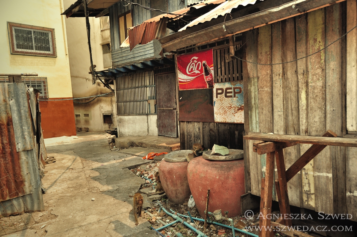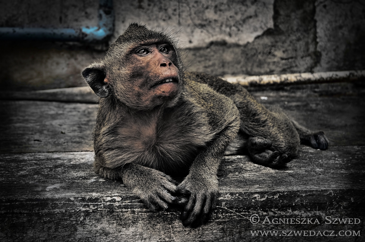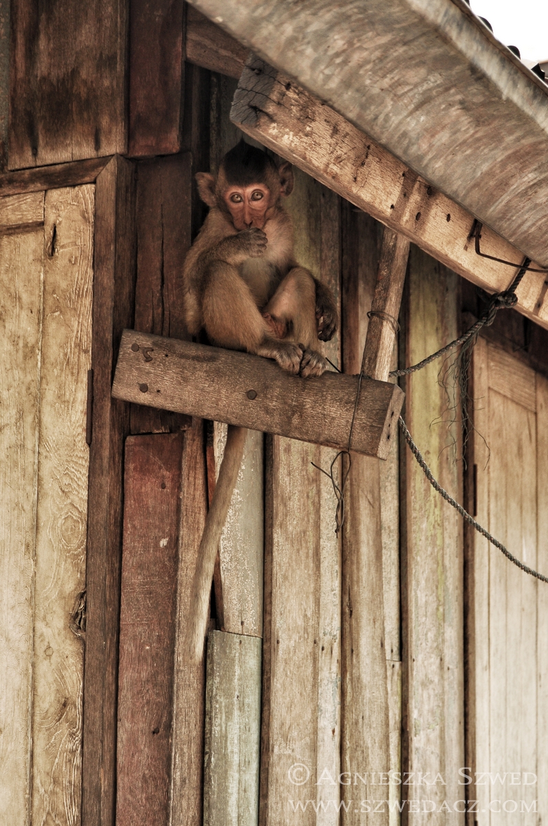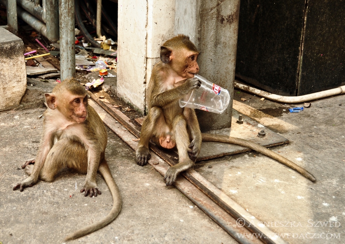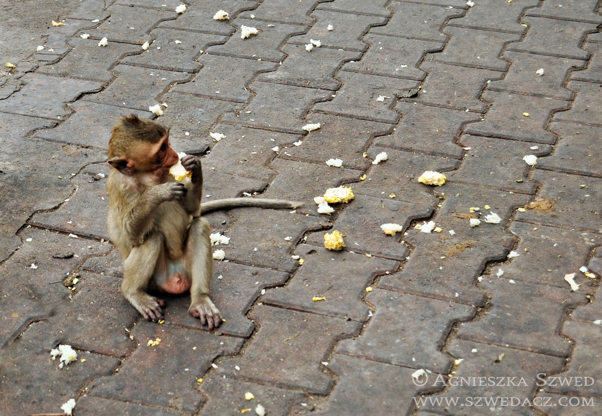 Lopburi znajduje się około 150 km na północ od Bangkoku (pokonanie tej odległości pociągiem w 2010 kosztowało odpowiednik niemal 4 zł). Tysiące makaków żyje tu nie tylko w murach świątyń (jak ma to często w tym kraju miejsce), lecz biega swobodnie po całym mieście, opanowując wiele ulic czy opuszczonych domów. Na jeden z nich mieliśmy okazję się natknąć i harmider, który stamtąd dobiegał wskazywał co najmniej na odbywającą się właśnie małpią orgię. Nie wypadało przeszkadzać, więc nie wchodziliśmy do środka. Wystarczył spacer zaułkami, będącymi również małpim królestwem.