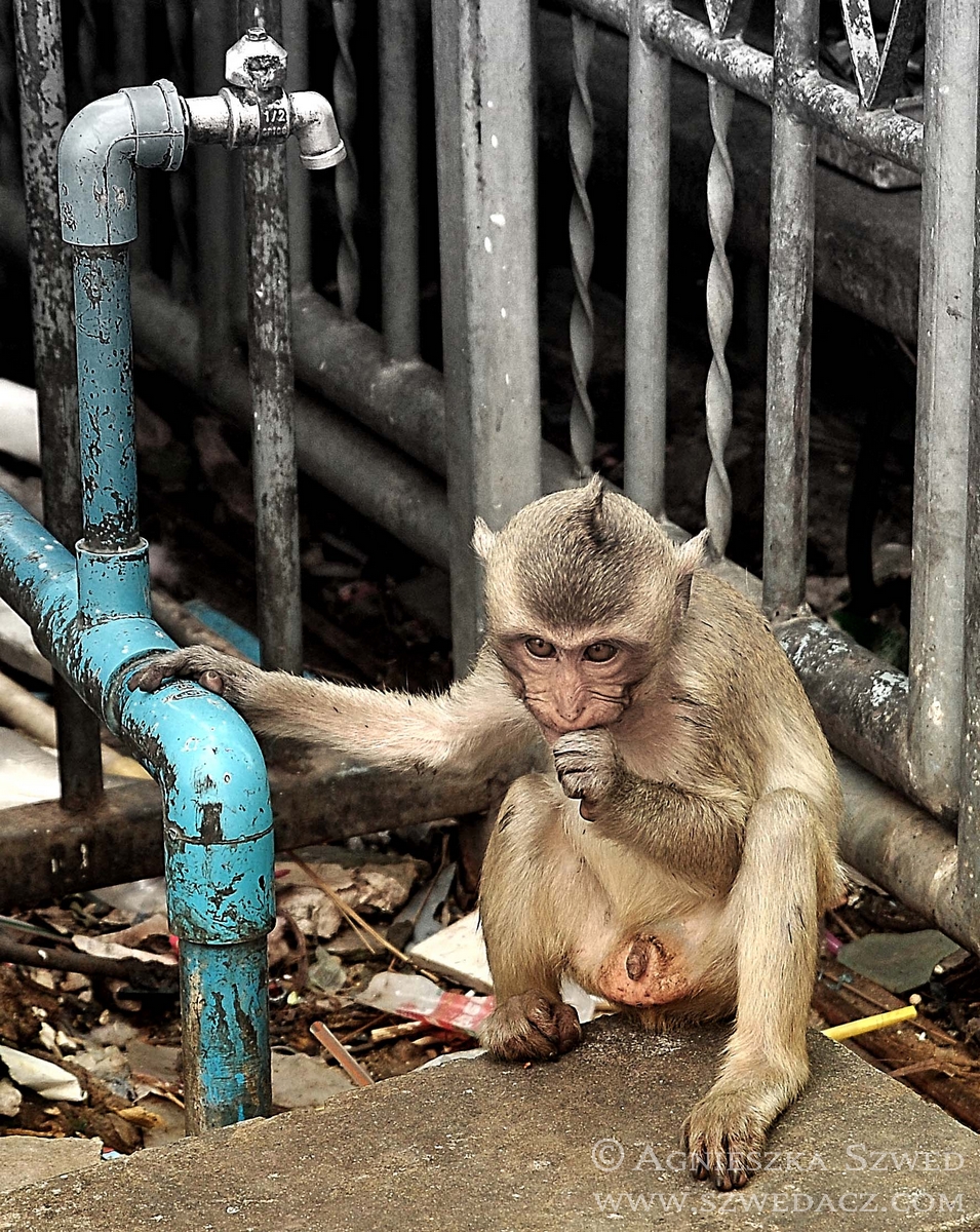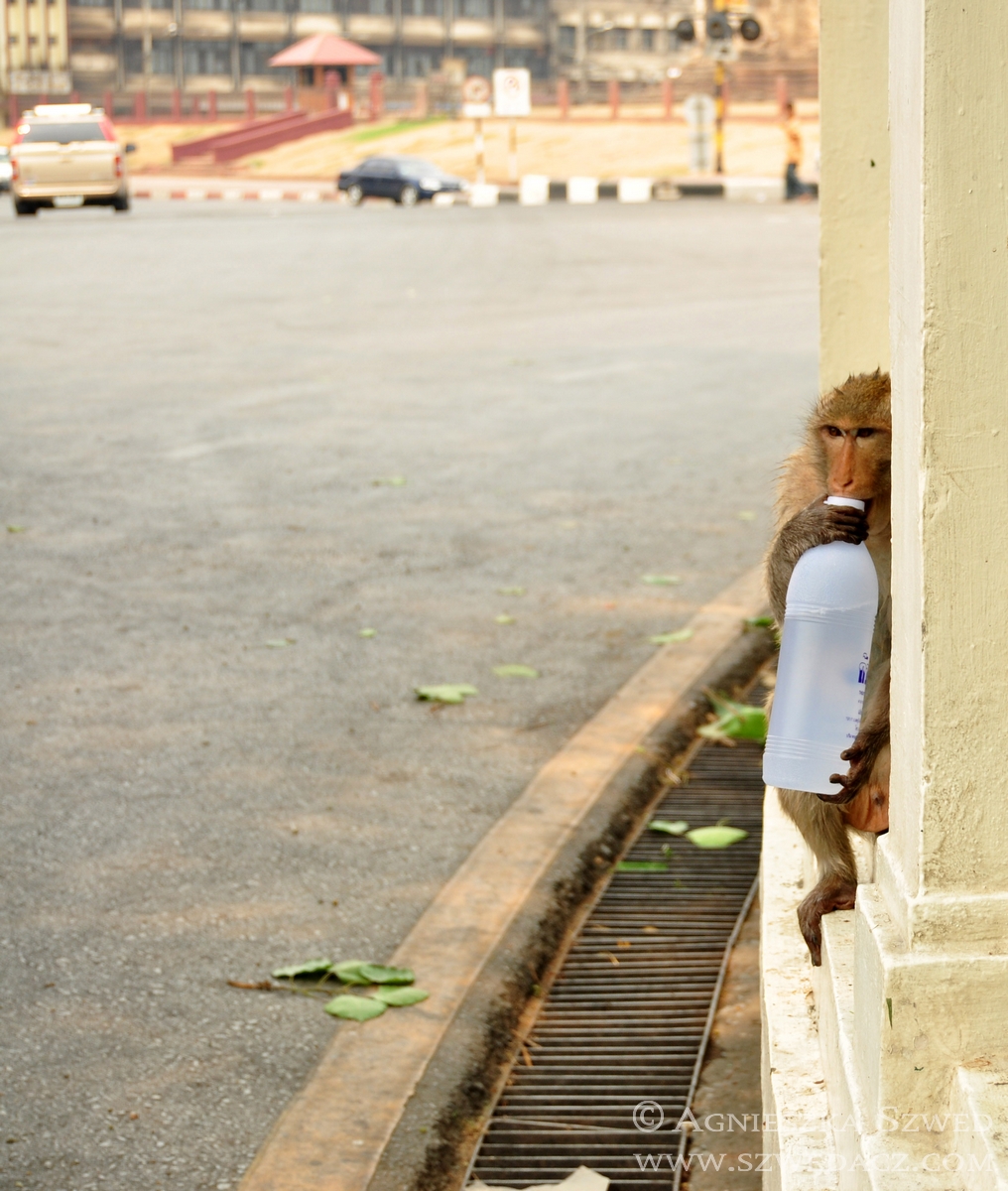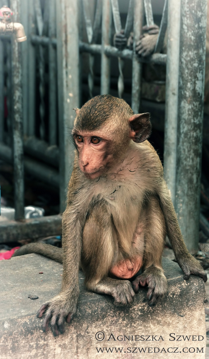 Zwierzaki w Tajlandii najłatwiej podziwiać, jak to zwykle bywa, na terenach mało zaludnionych, szczególnie w Parkach Narodowych. Z pewnym wyjątkiem. Już przy samym wjeździe do Lopburi, na stacji kolejowej, wita nas pokaźnych rozmiarów, złocisty pomnik makaka. Nie znalazł się tam przypadkowo i stanowi zapowiedź, czego możemy spodziewać się w mieście, zwanym zresztą „miastem małp”.