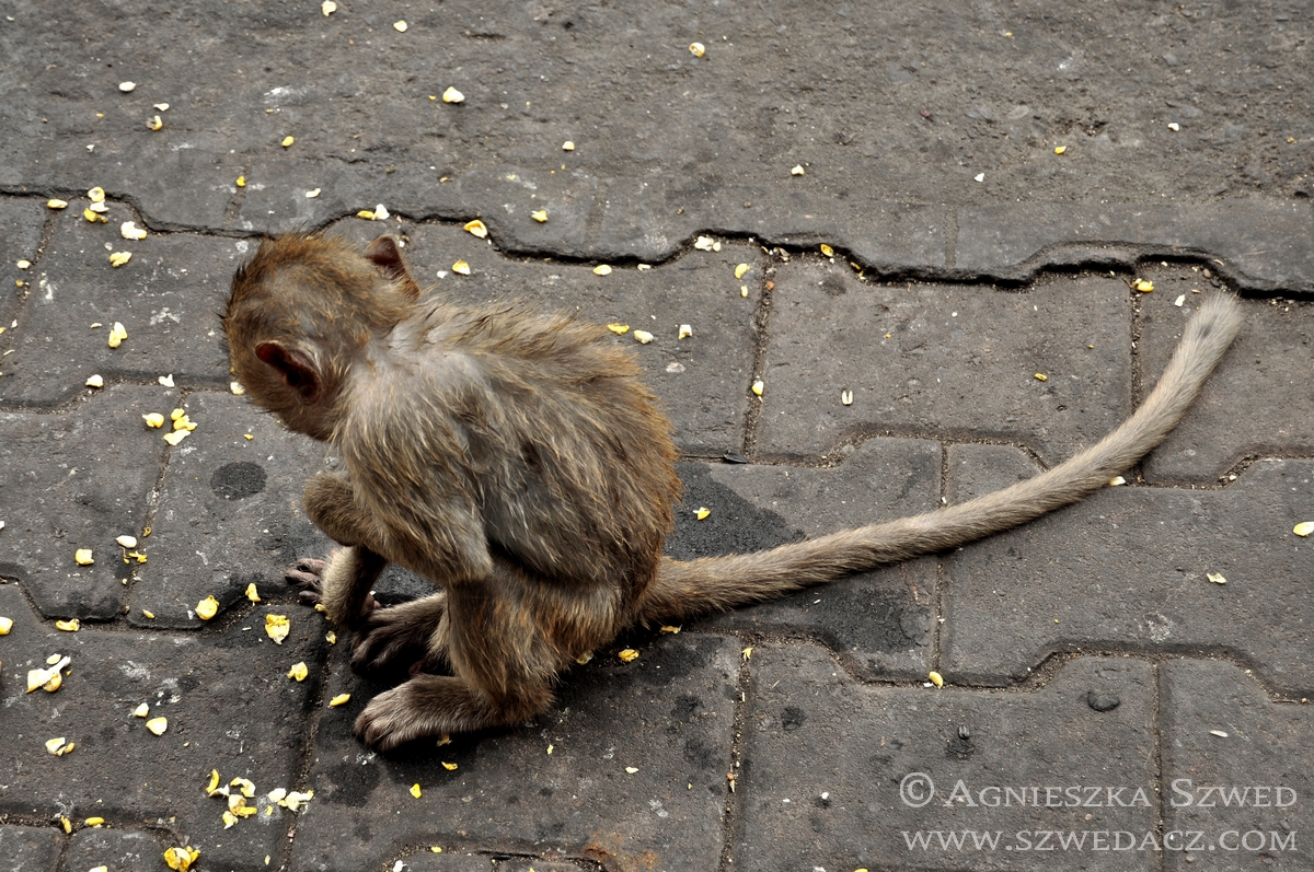 Tym bardziej, że robiące słodkie oczka zwierzaki, potrafią stać się natarczywe, a nawet agresywne… i przez przypadek mogą sprzedać nam wirusa wścieklizny. Przede wszystkim jednak makaki to bardzo zręczni złodzieje. Mimo, że byliśmy tego świadomi, nie uchroniliśmy się przed zwinięciem długopisu i butelki wody. Na szczęście na tym straty się skończyły.